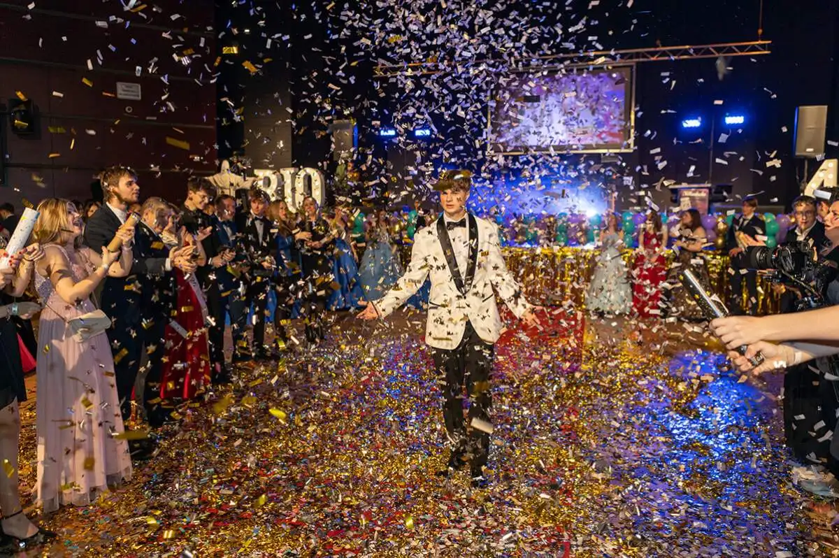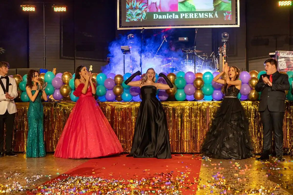 Postarali jsme se o kompletní vizuální proměnu prostoru — od grafické přípravy přes dekorace až po veškerý mobiliář. A samozřejmě nechyběla ani naše inspice přímo na místě, aby vše proběhlo přesně tak, jak si maturanti zasloužili.